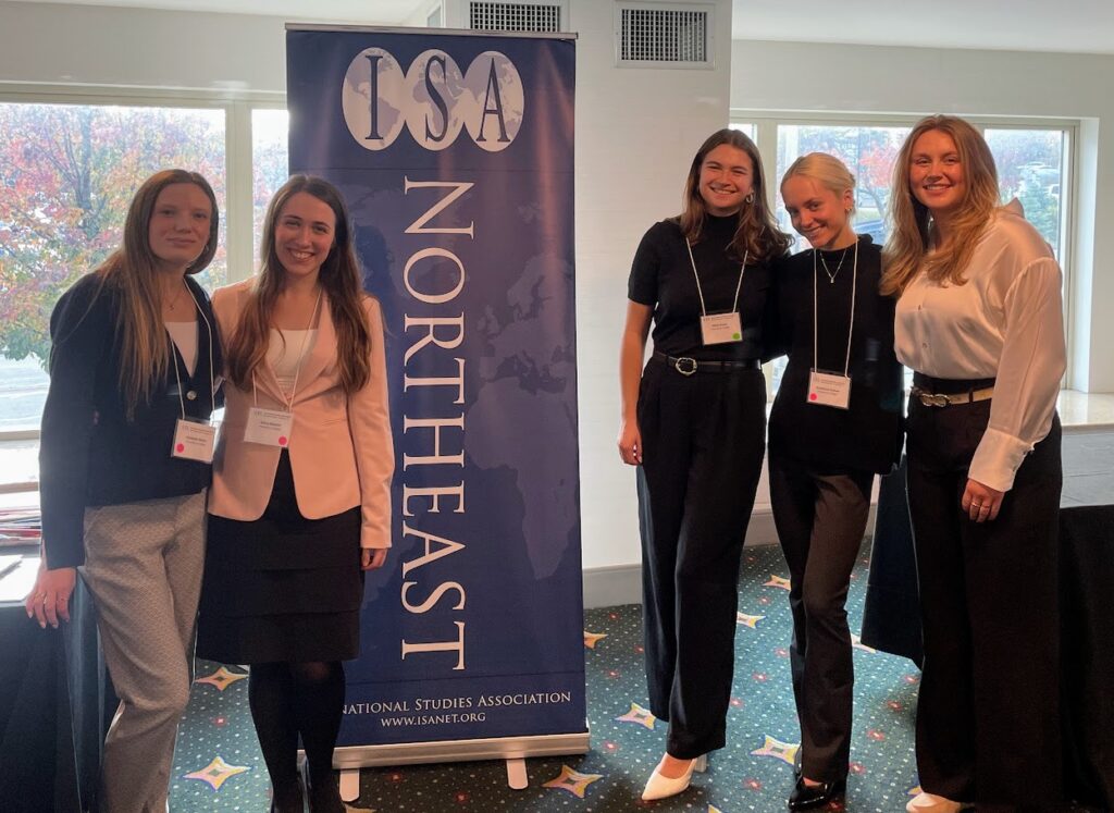 Dr. Casey Stevens and six undergraduate Political Science students — Whitney Bond, Olivia Keane, Maria Mantini, Elizabeth Muller, Katharine O’Neil, and Madeleine Outlaw — presented original research on this very question at the Northeast International Studies Association conference. On a panel alongside distinguished professors and Ph.D. candidates from top programs, these students shared important findings on international environmental politics and species protection.